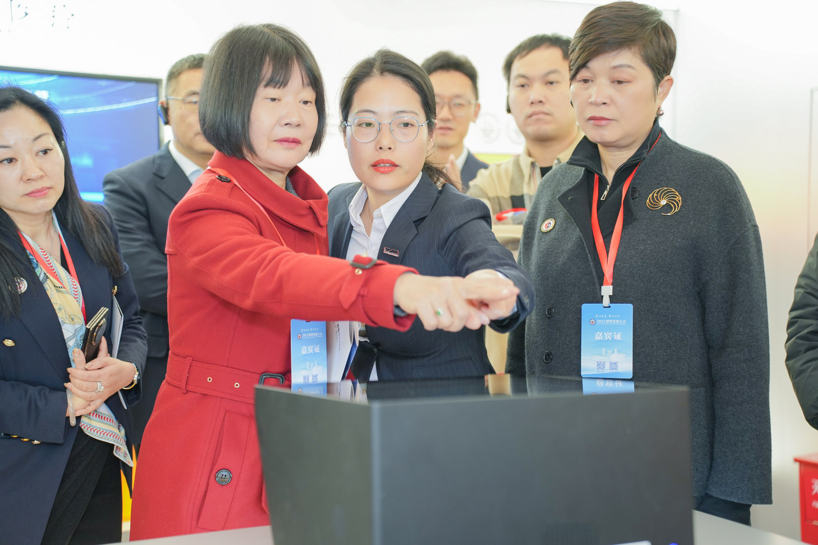 大会期间,多位来自浙江省协会、科技局等各行各业的重量级嘉宾在常裕新创·诸暨平行空间沉浸式体验了像航的无介质全息设备,并对无介质全息技术展示了极大的兴趣。