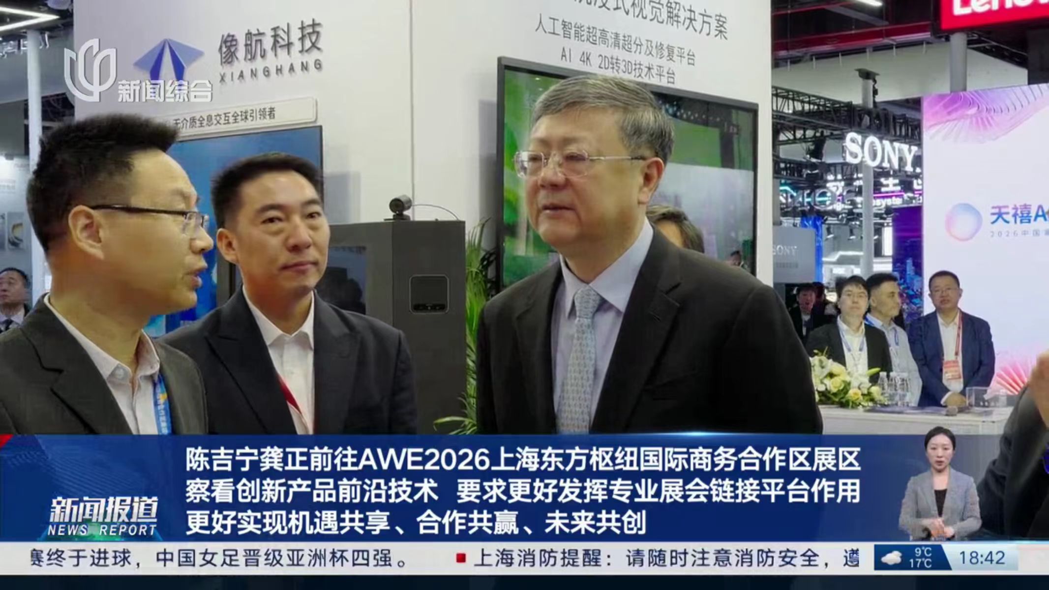 本届AWE,像航同步设立两大展区,多维度呈现了无介质全息技术的创新应用。今日,中央政治局委员、上海市委书记陈吉宁亲临上海东方枢纽国际商务合作区展区,对人工智能、超高清等前沿技术的应用成果给予了高度评价,并勉励企业要充分利用AWE这类专业展会的链接平台作用,推动技术交流与产业合作,助力实现机遇共享、合作共赢,共创未来。